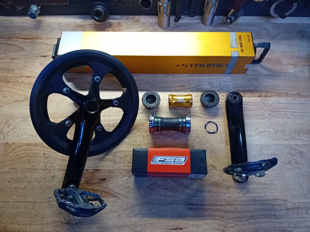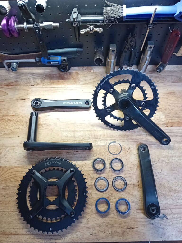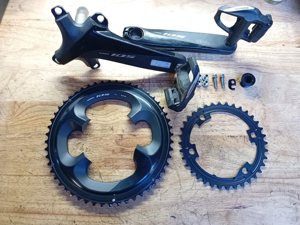 Het Reinigen van een crankstel, en eventueel het vernieuwen van de tandbladen.
