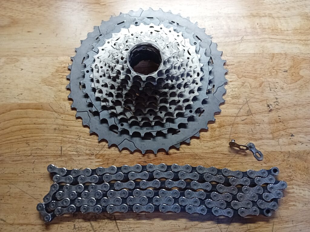 Een cassette en ketting die zijn gereinigd in de ultrasoon.